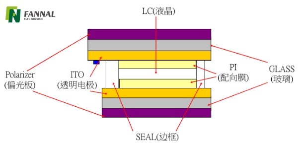 標準の TN LCD スタックには次のものが含まれます。